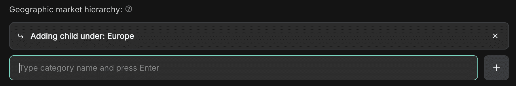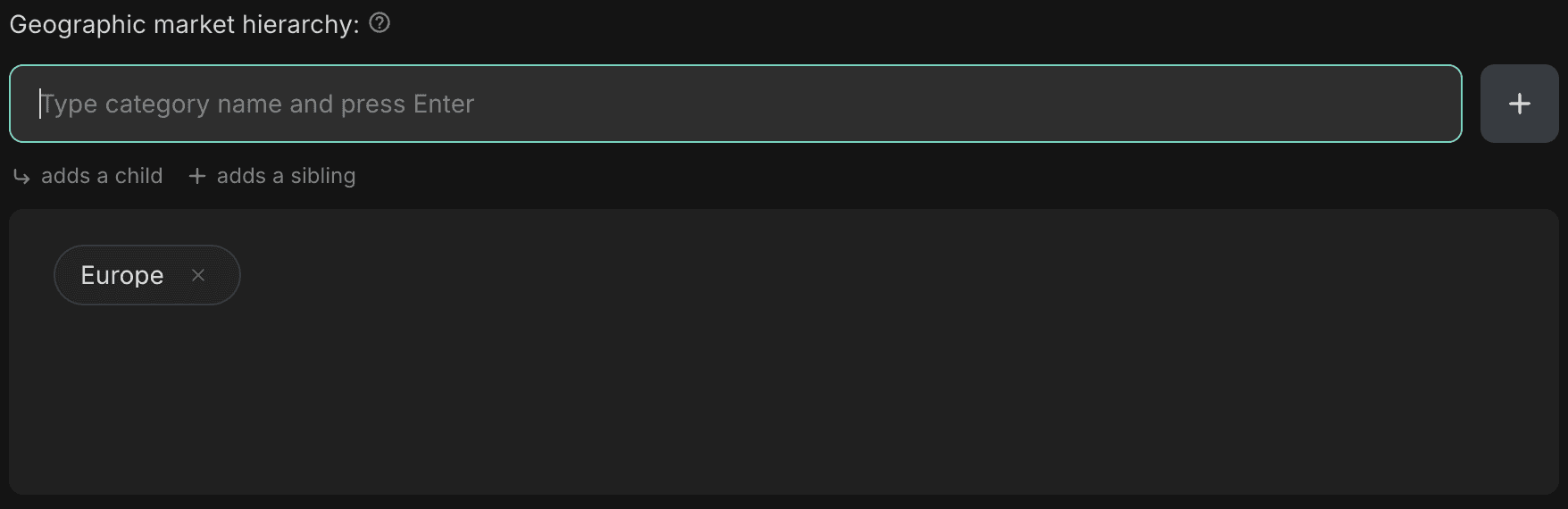 This will add a new top-level item to your hierarchy (e.g. Europe for geographic market, Beverages for product market).